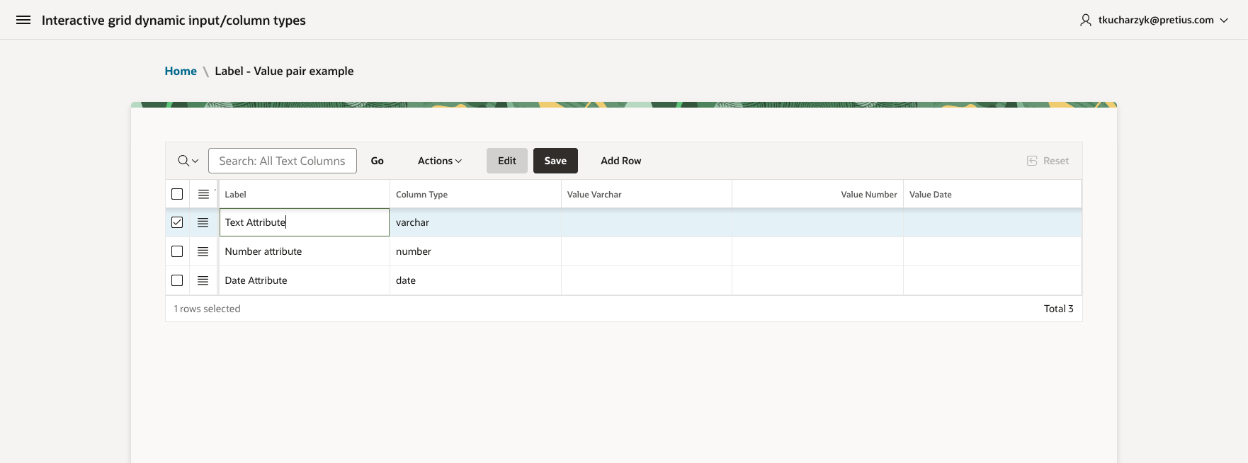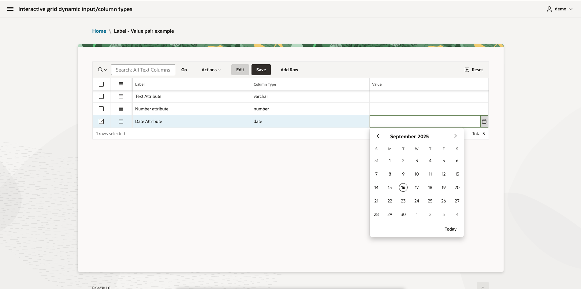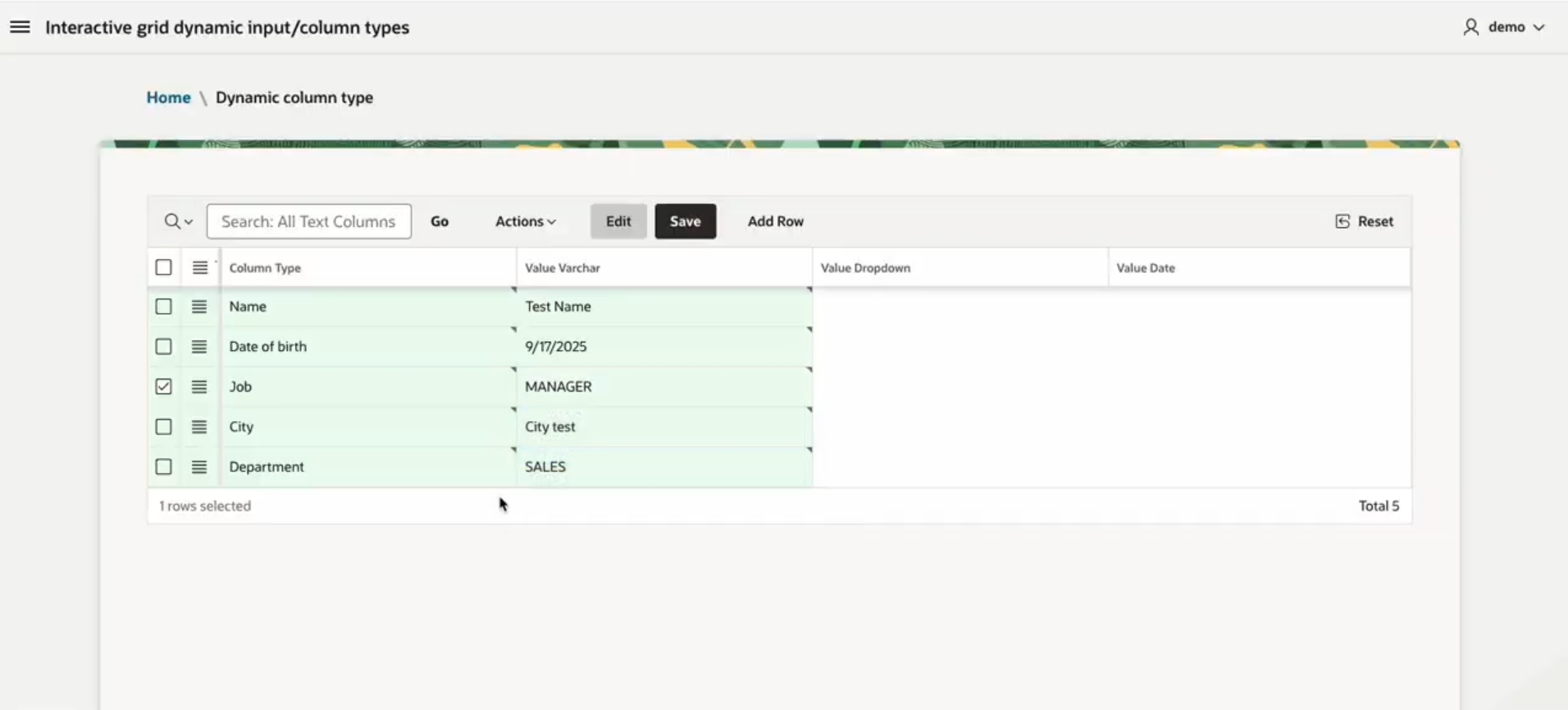 We can have multiple rows, and each value input can be of a different type. Let’s see how we can achieve this in an interactive grid.