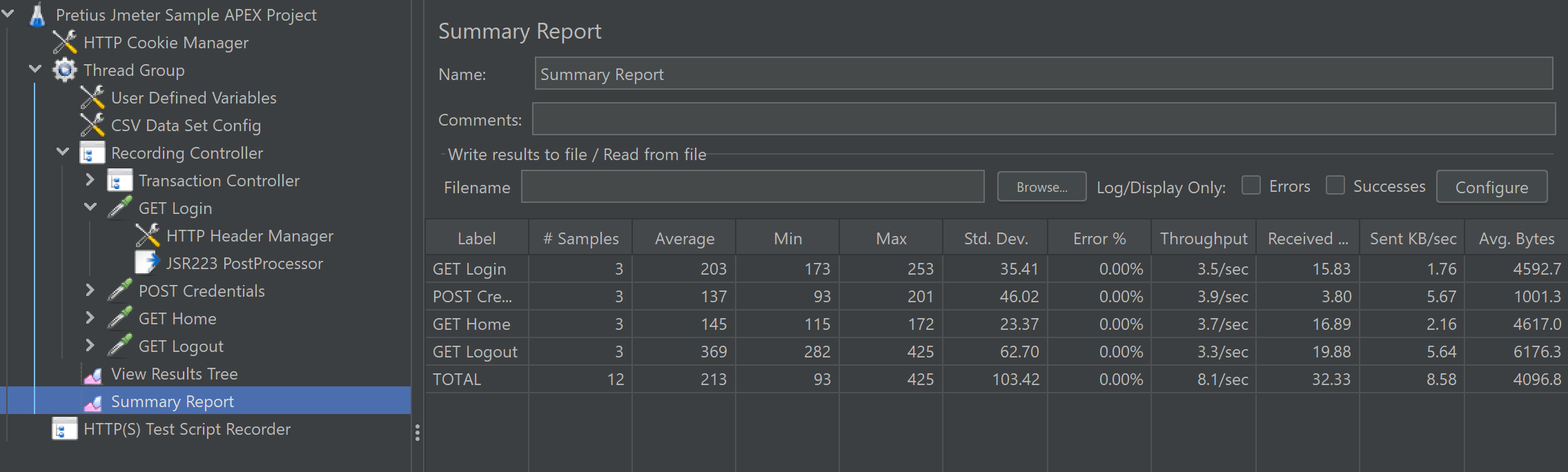 The Pretius JMeter APEX Template addresses this need by providing a configurable, open-source starter project designed specifically for Oracle APEX load testing using Apache JMeter.