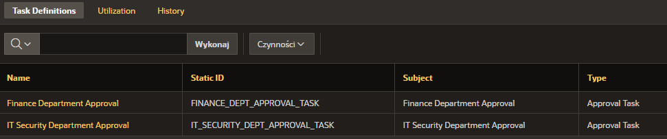 Note! According to the documentation for the APEX_HUMAN_TASK.CANCEL_TASK procedure, a task can only be canceled by its initiator or Business Administrator. Therefore, to cancel a task for the IT Security Department when the Finance Department rejects the approval task, you must add the Potential Owners from the Finance Department approval task as Business Administrators in the IT Security Department approval task. The second option is to temporarily switch the APEX session to a user with the appropriate permissions – I’ll cover this workaround in the next blog post in the series.