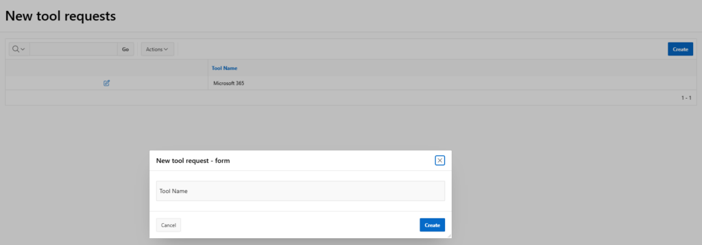 I also created a very simple report with a form that allows me to request a new tool, thus triggering my workflow.