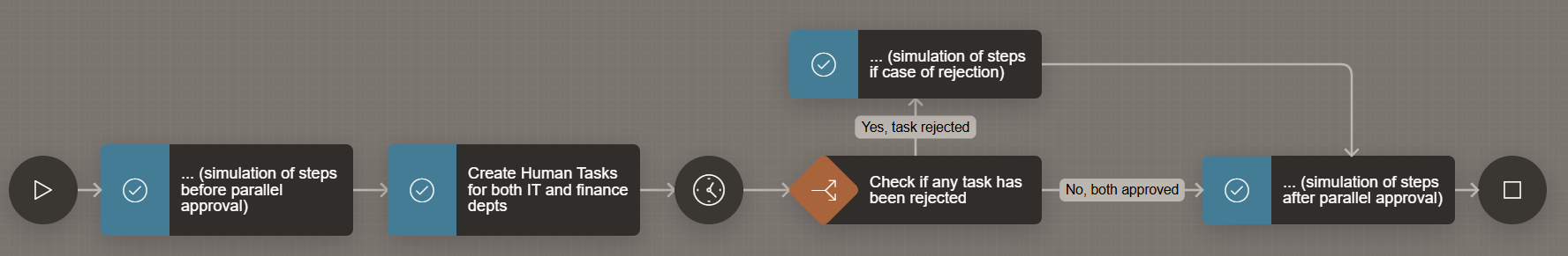 If my check returns true, it means one of the approval tasks has been rejected. If it returns false, it means both approval tasks have been accepted, and the request can continue.
