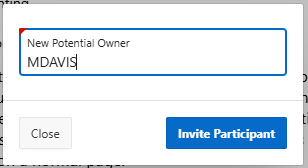 I close the delegation window and click the Invite Participant option from the menu, enter the name of the user who is an employee of the Finance department, and then click the Invite Participant button.