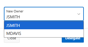 I receive confirmation that a new potential owner has been successfully added, so I click the Delegate option again and check if MDAVIS appeared on the list as a Potential Owner to whom I can delegate the task. He is indeed on the list, so I can delegate this task to him.